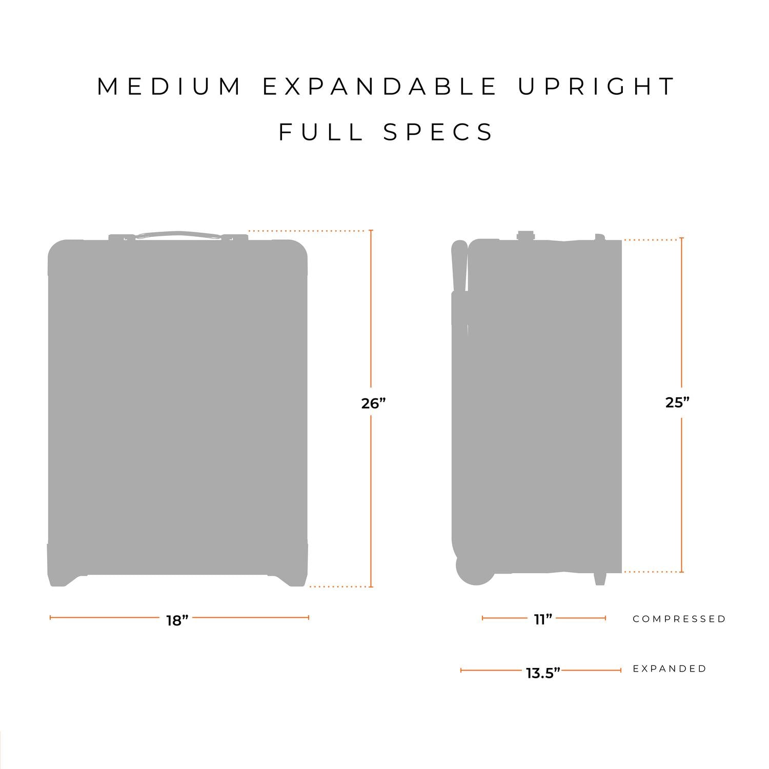 Take advantage of our Medium Expandable Upright for your longer journeys. With our innovative CX technology, you can pack more when you need it. It's impeccably crafted with all the features you come to rely on from the Baseline collection.