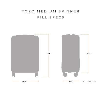 Long gone are the days of the heavy 50/50 hardside suitcase; pack how you want with our 70/30 Torq Medium Spinner. At only 8.9 pounds, this bag doesn't sacrifice weight for space, and is still lightweight enough to glide alongside you.